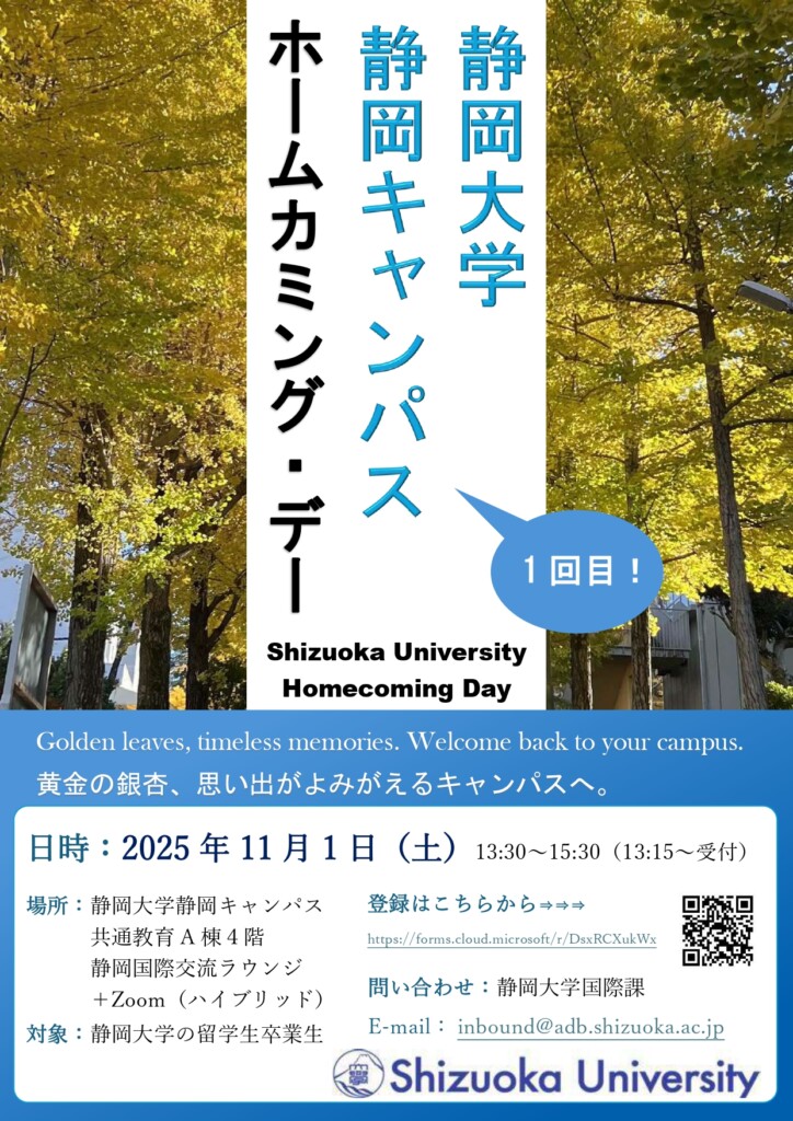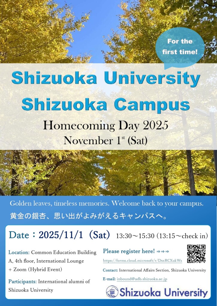 – 場所:静岡キャンパス共通教育A棟4階 国際交流ラウンジ+Zoom(ハイブリッド)
