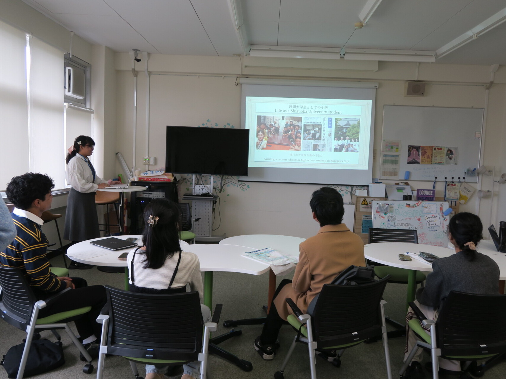 在校生2名がそれぞれの入試対策や、静大での学び、学生生活について発表を行いました。