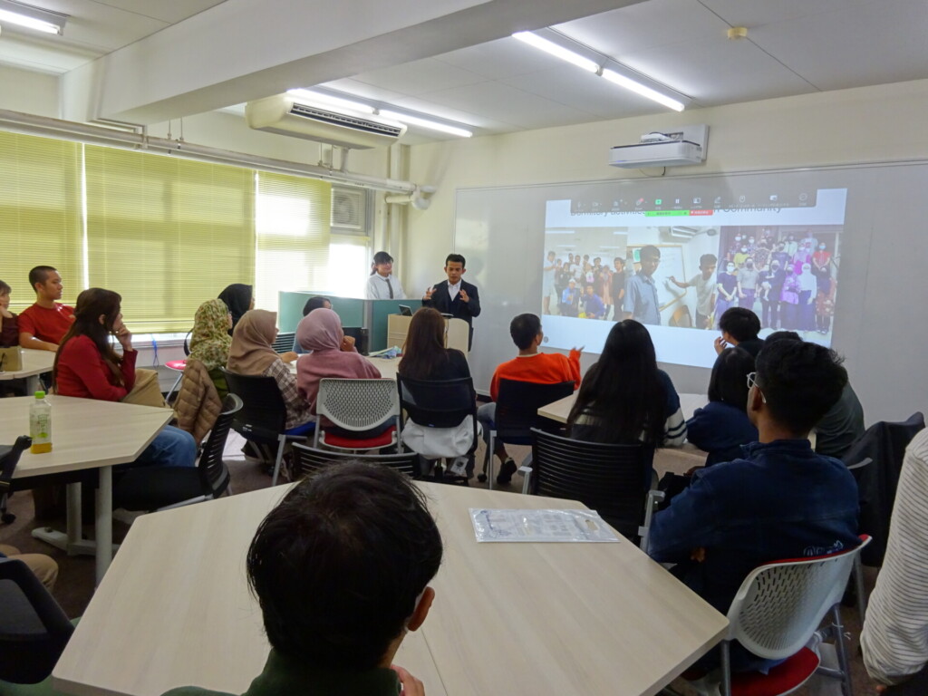 卒業生3名による発表が行われ、在校生たちは先輩方の経験やメッセージに真剣に耳を傾けていました。